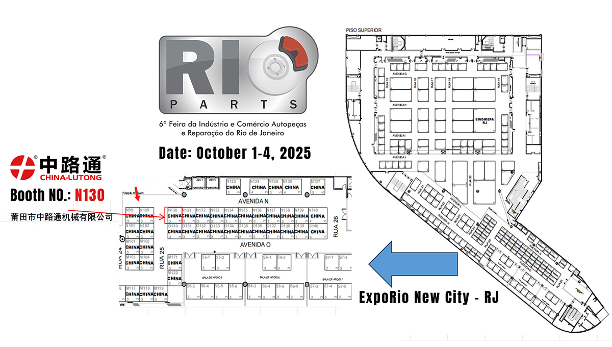 Temos a honra de convidá-lo(a) para a Feira Internacional de Peças e Reparos Automotivos do Rio de Janeiro 2025 (RIOPARTS), organizada pela Diretriz Feiras e Eventos Ltda. A Feira é realizada anualmente no Rio de Janeiro em anos ímpares e em Curitiba em anos pares. O estande da China Lutong fica na Rua N130.